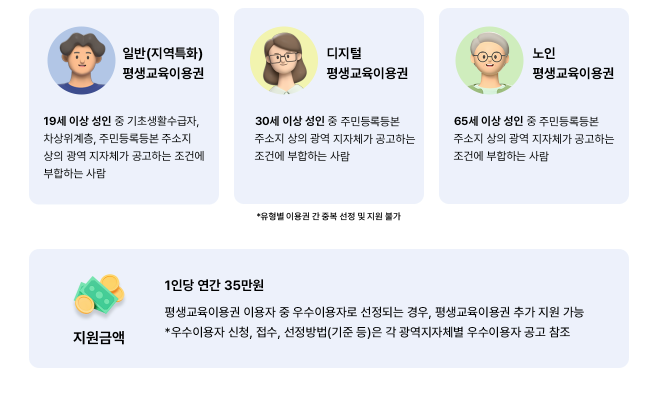 | 디지털형 | 약 1만명 | 30세 이상 성인 | 지정 교육기관 강좌만 이용 가능 |